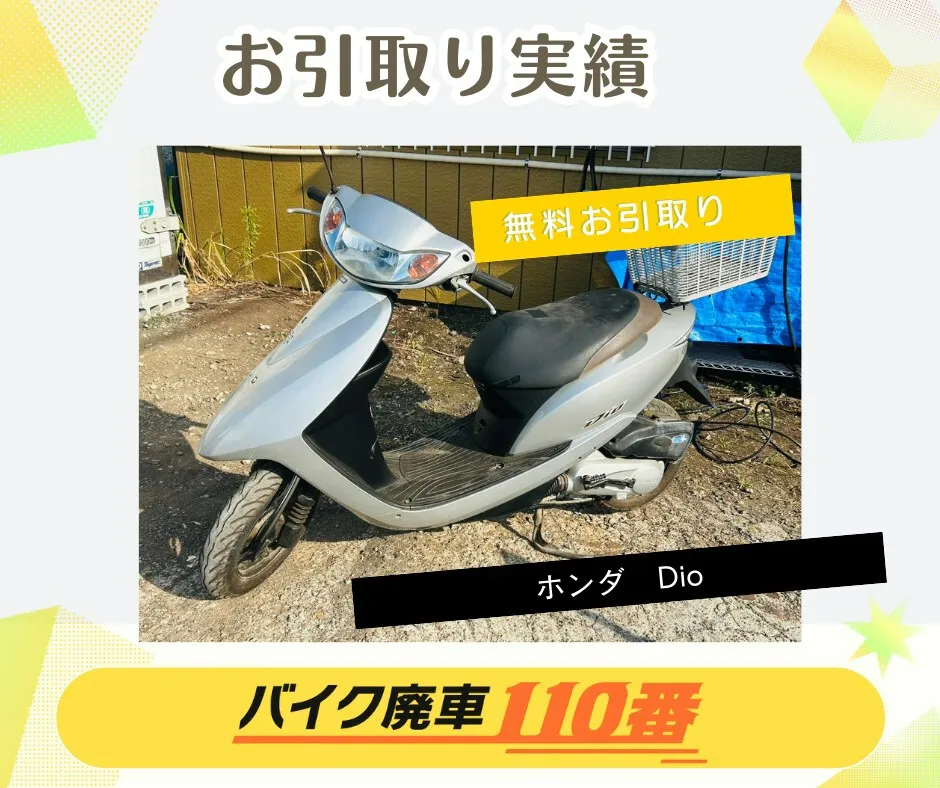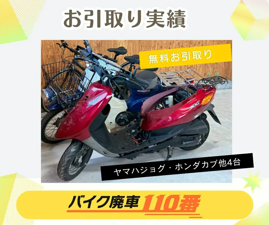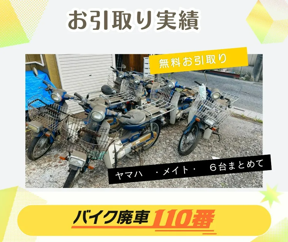 他社では有料引き取りしか出来ないと言われていたエンジンがかからないボロボロの原付でしたが、 廃車110番さんでは無料で引き取ってもらえました。 夜間に対応をいただきありがとうございました。