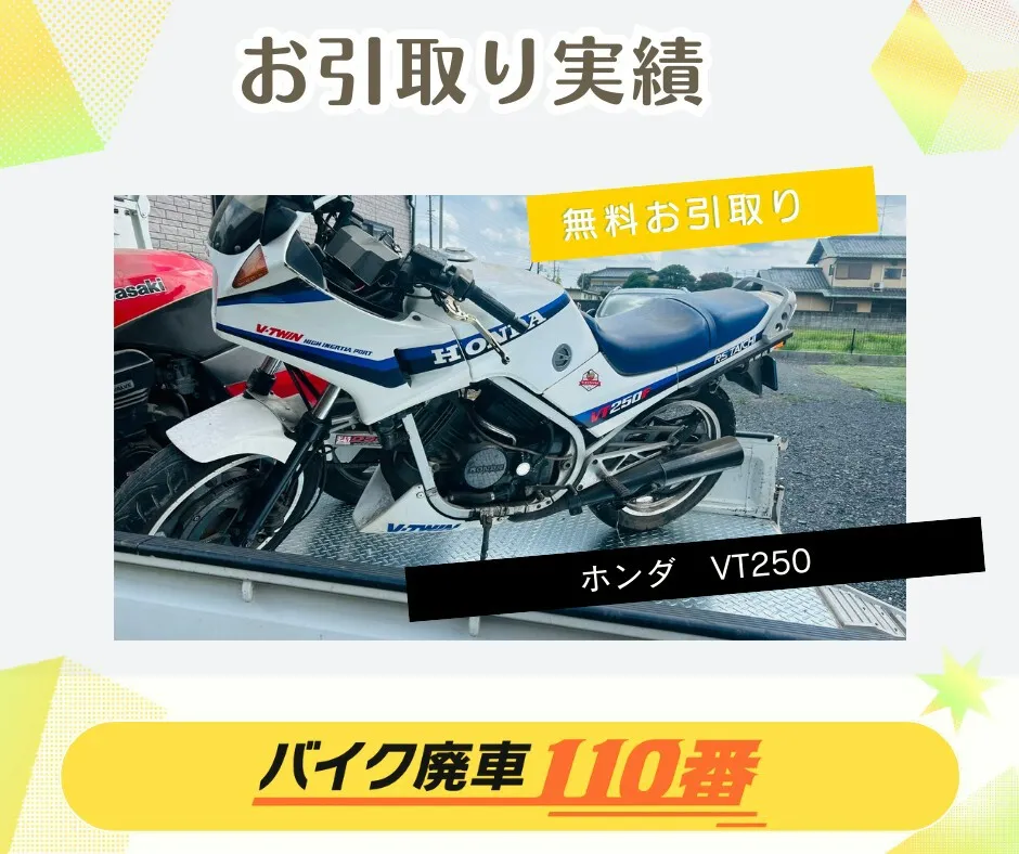 電話をした当日にすぐに駆けつけてくれて、無料でレッカー処分と廃車手続きまで行ってくれました。 実家の整理で出たバイクとは関係のない不用品も一緒に引き取りをしてくれたので、すごく助かりました。