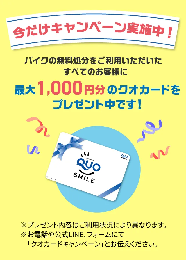 バイク以外の乗り物の無料引き取りは可能ですか?